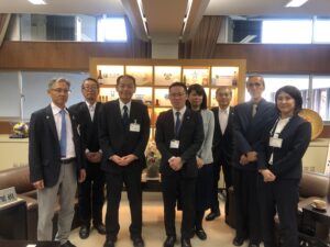 仲渡さんはマレーシアのプトラ大学にあるスポーツセンターの管理・運営業務に携わりながら、アスリートやコーチにスポーツに関する指導をします。「専門用語も交えつつ相手にわかりやすくできるように努めたい。そのためにマレー語の学習も継続したい」と意気込みを語りました。冨田部長との面談の中で、マレーシアの食生活、住環境、語学、天候、野生動物の話などが挙がり、2年後ご縁があればぜひ今治市に戻ってきてほしいと激励を受けました。