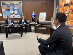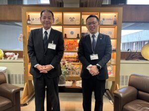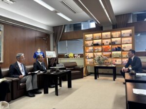 2025年11月25日、JICA海外協力隊2025年度2次隊の仲渡新司さん(派遣国:マレーシア/職種:フィジカルアクティビティ)が今治市の冨田義勝総合政策部長を表敬訪問しました。